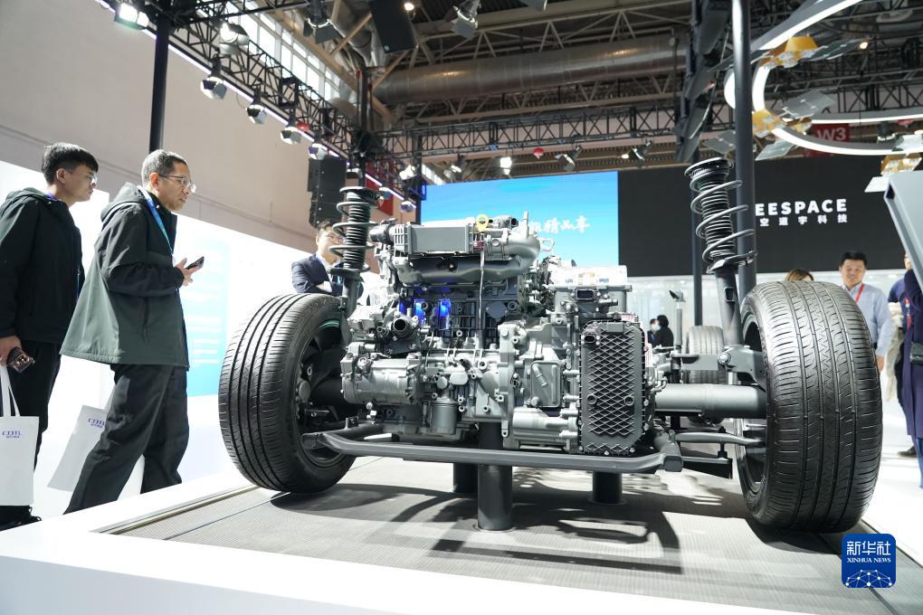 11月28日,在智能汽车链展区吉利汽车集团展位拍摄的“雷神”电混系统。新华社