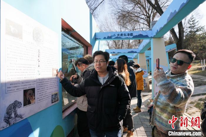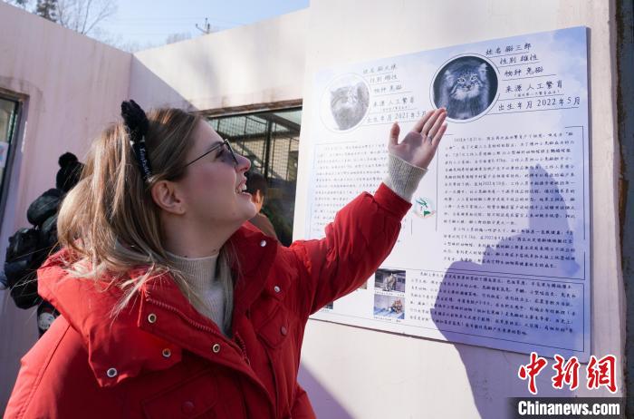 11月29日,来自海外的文旅达人在西宁野生动物园内了解兔狲。中新网