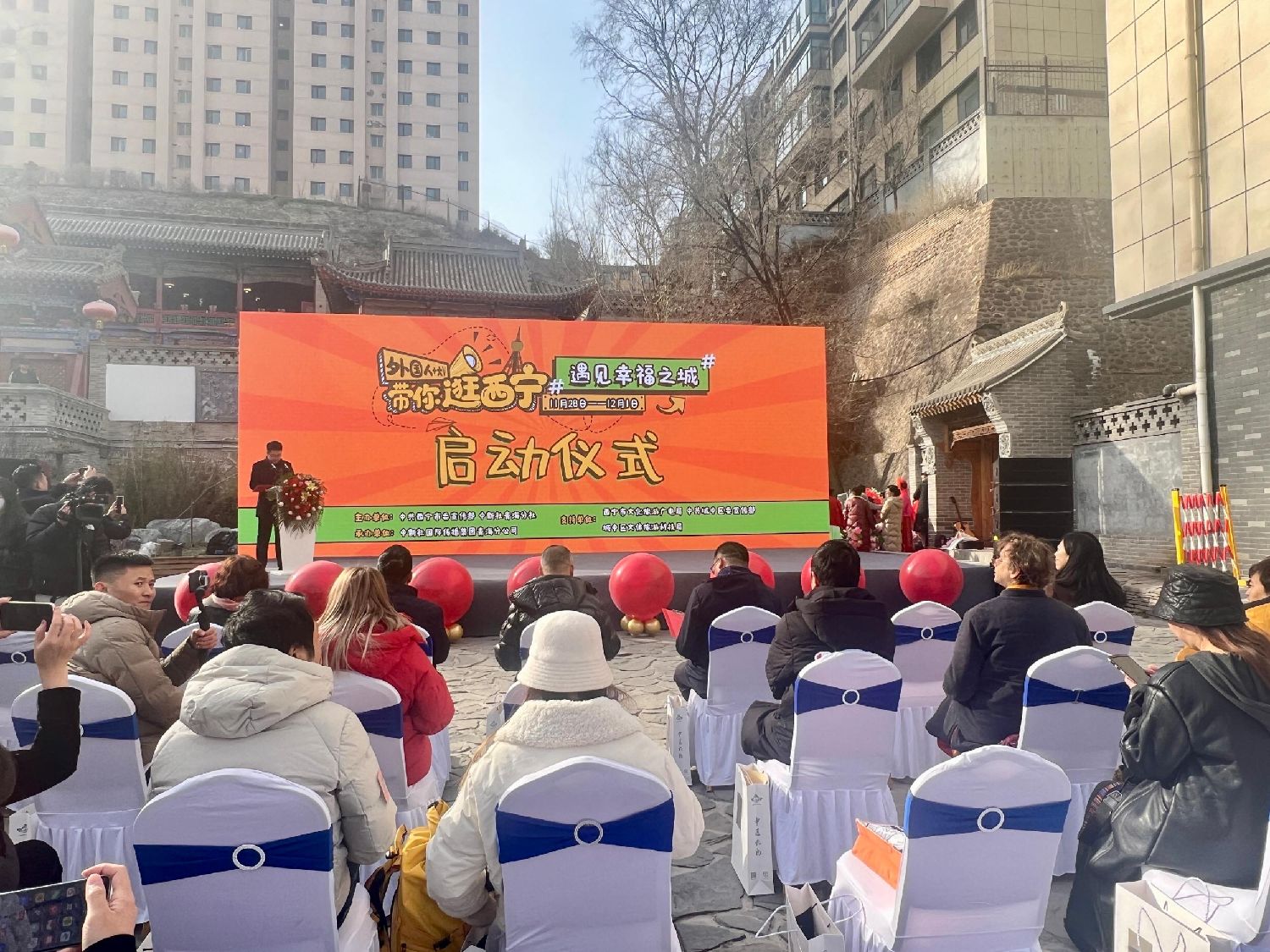 “遇见幸福之城——外国人+大V带你一起逛西宁”活动11月28日在中国青海省西宁市城中区香水书院启动。本次活动邀请海内外文旅达人走进西宁,以国际化视角,多形态立体呈现西宁的人文历史、生态文明、现代风貌、美食美景等内容,讲述“中国最具幸福感城市”的幸福故事,展示中国夏都的别样冬日之美。图为启动仪式现场。青海新闻网