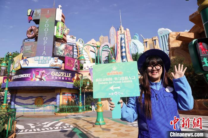 11月29日,工作人员在“疯狂动物城”主题园区微笑迎客。中新网