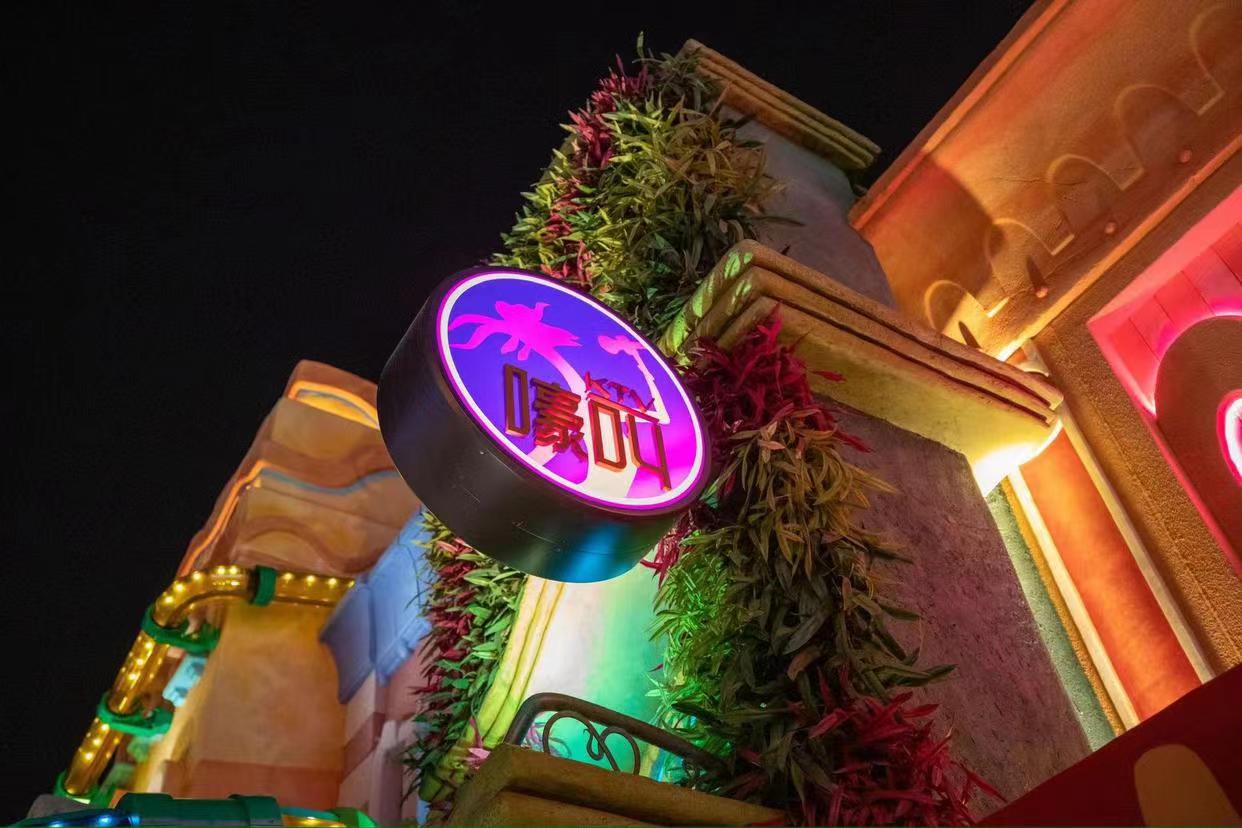 “嚎叫KTV”“明眸耗齿”“冰窖桑拿”等动物商铺,还原呈现动物城风情。图为“嚎叫KTV”。《新京报》