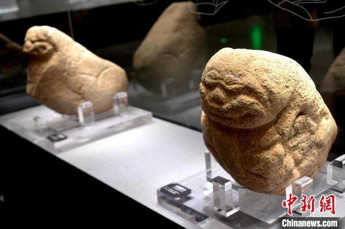 日喀则博物馆展出的吐蕃时期的一对石狮子。中新网