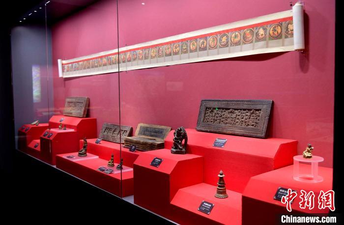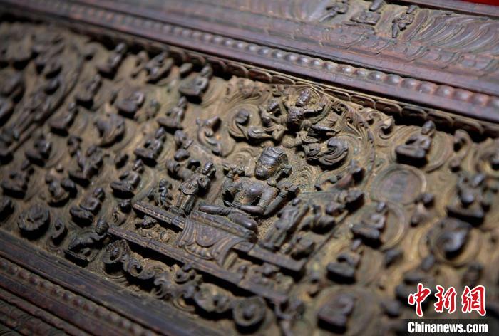 日喀则博物馆展出的明代般若佛母经夹板。中新网