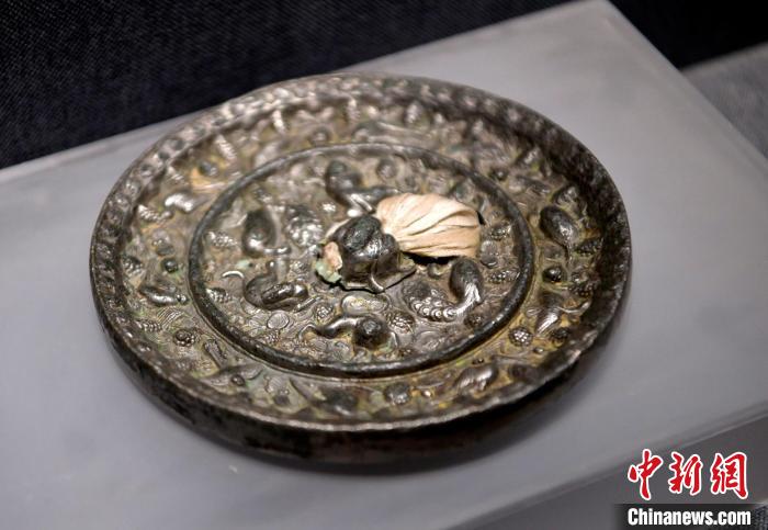 日喀则博物馆展出的唐代瑞兽葡萄镜。中新网