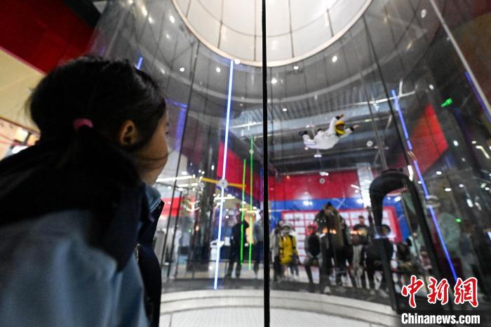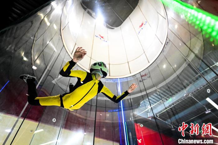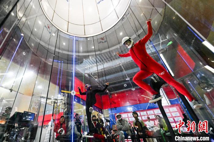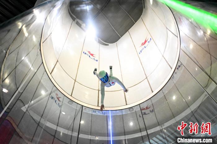 身着专业的飞行服和头盔,脚踏运动鞋,站在风洞的出口处,准备迎接挑战,随着裁判员发出号令,飞行员一个接一个地跃入风洞。在风力的作用下,他们挥舞着双臂,努力保持平衡,完成各种高难度的动作。中新网