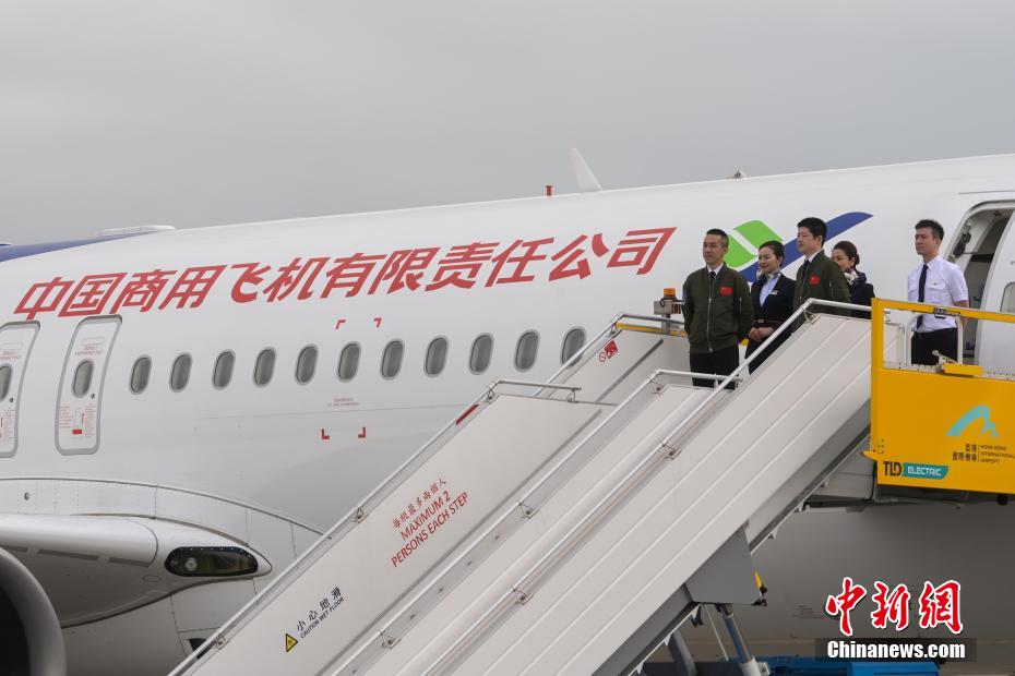 中国国产飞机C919及机组人员。中新网