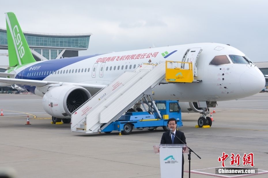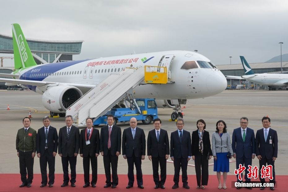 12月12日,C919飞机降落香港国际机场。新华社