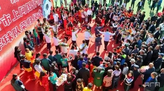 中国“援疆杯”足球赛阿图什市上阿图什镇冠军球队荣归仪式 。央广网/阿图什市融媒体中心供图