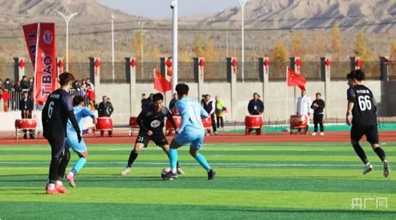 2023年“阿图什杯”全疆足球邀请赛阿图什队与和田队正在进行激烈的角逐。央广网/阿图什市融媒体中心供图