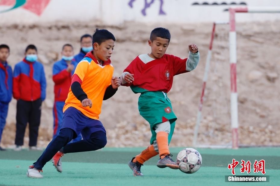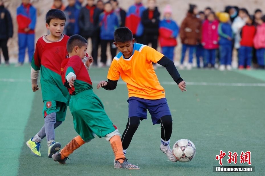 13日,在阿图什市上阿图什镇依克萨克小学,一场乡村小学间的足球赛正激烈进行。中新网
