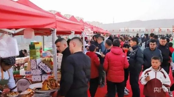 “阿图什杯”足球赛美食摊位前,游客在选购。央广网/阿图什市融媒体中心供图