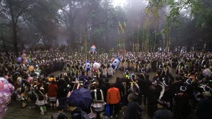岜沙村民庆祝一年一度的苗族芦笙节。人民网