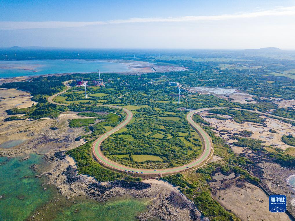 海南环岛旅游公路儋州段景色(无人机照片,11月26日摄)。新华社