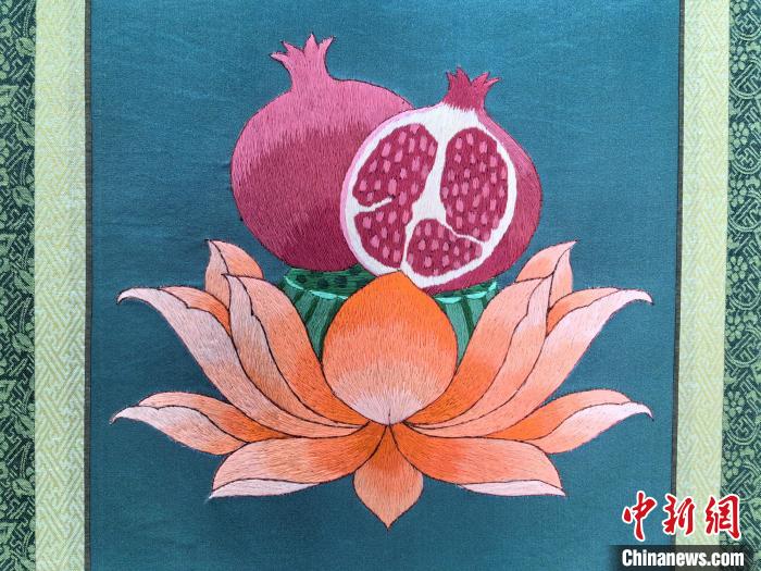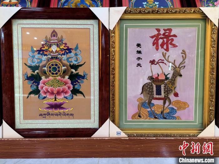 藏绣研发中心展厅内陈列的藏绣作品。