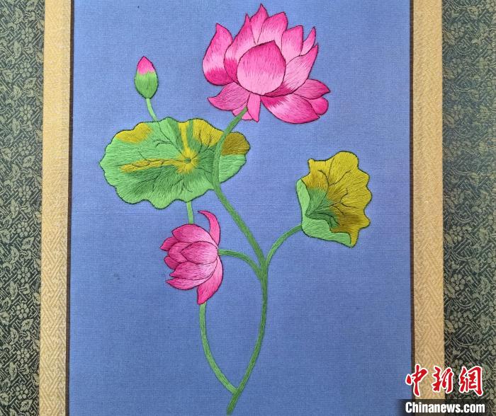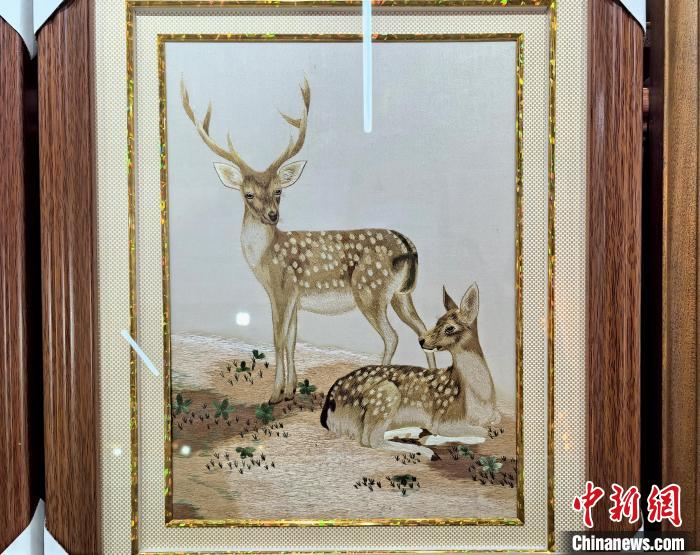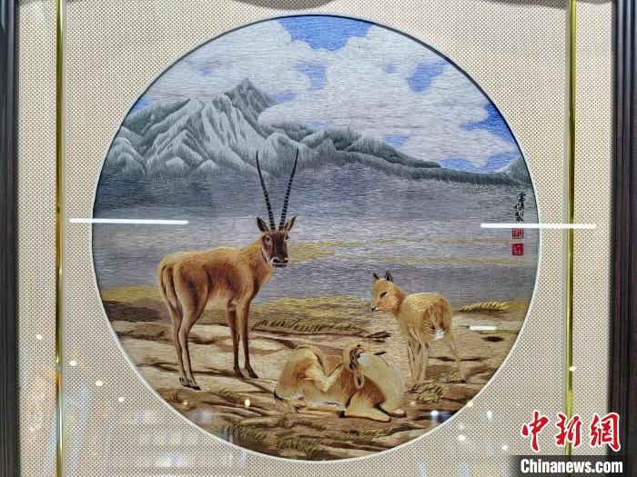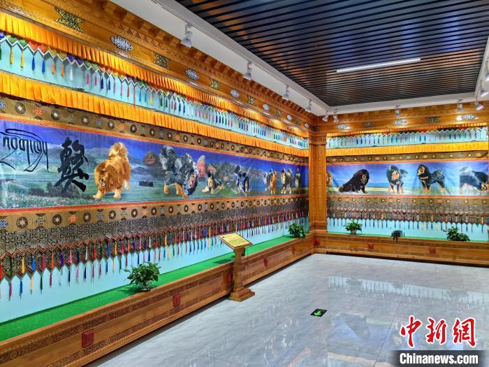 据悉,藏绣是中国少数民族传统文化中最具特色的刺绣派系之一,有着1200多年历史的“海南藏绣”,在漫长的历史发展过程中,不断吸收中原文化、中西亚文化及藏传佛教文化中各种艺术手法,逐步演变成了一种具有浓郁地方民族特色的青藏高原文化现象。图为藏绣研发中心展厅内陈列的藏绣作品《獒》。