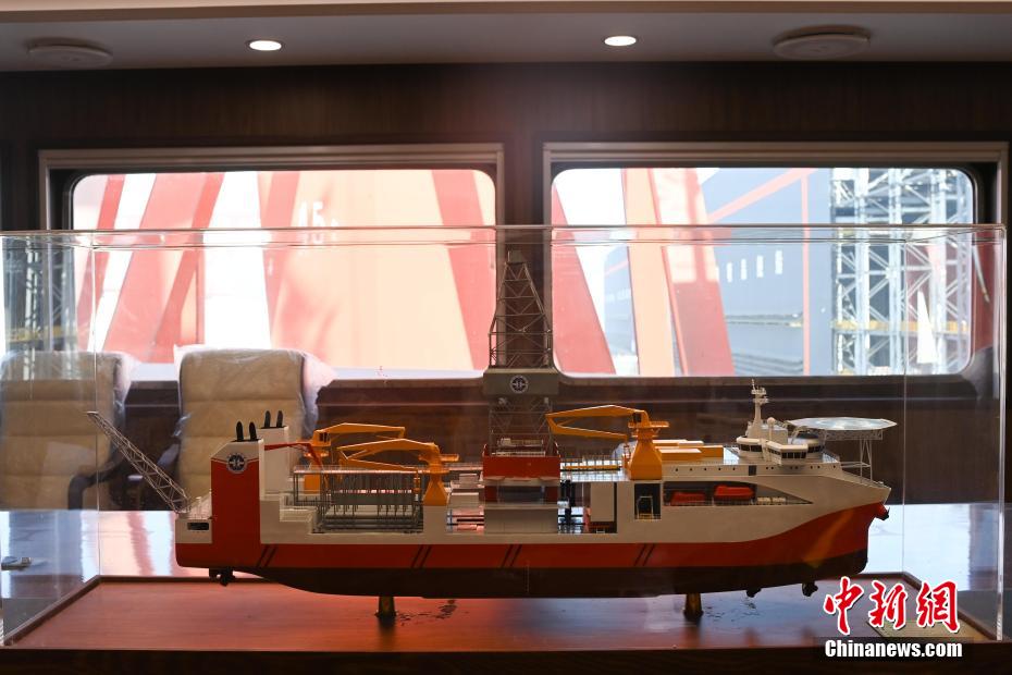 12月15日,广州市南沙区,“梦想”号大洋钻探船的会议室摆放该船模型。中新网