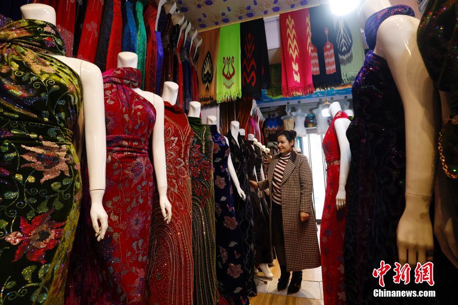 新疆和田是这样一个地方:南有昆仑山,北有塔克拉玛干沙漠,总面积24.74万平方公里,其中山地占33.3%,沙漠戈壁占63%,人们坚守在其中的小片绿洲,努力向沙漠要生存。曾经,在恶劣的自然环境下,当地妇女就业选择不多,很多人只能务农生活或受困于灶台。如今,情况正在转变。在和田地区皮山农场,有这样3位乡村女性,她们身上有很多相似之处:精致爱美的女人、妻子、母亲、创业者、家庭的经济支柱。图为祖热古丽·艾孜然提在自己的丝绸店中整理商品。