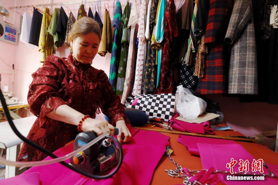 和田地区皮山农场的一间裁缝店内,店主布阿米乃·赛迪艾合买提正在忙碌。