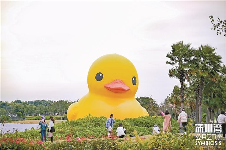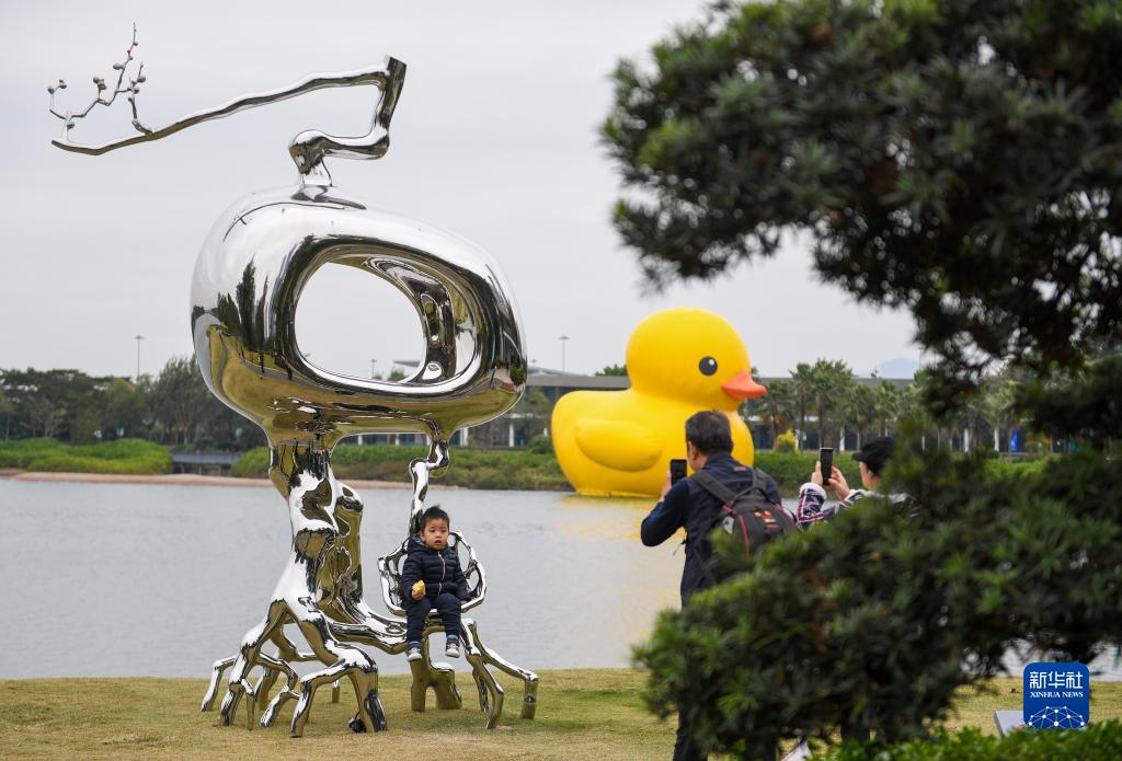 作为“创意十二月”重点活动之一,12月20日,2023深圳湾公共艺术季在深圳人才公园开幕,包括“大黄鸭”在内的12件出自海内外艺术家之手的雕塑和装置作品在该公园向公众展出,活动将持续至2024年3月20日。图为当日,2023深圳湾公共艺术季在深圳人才公园开幕。《深圳特区报》