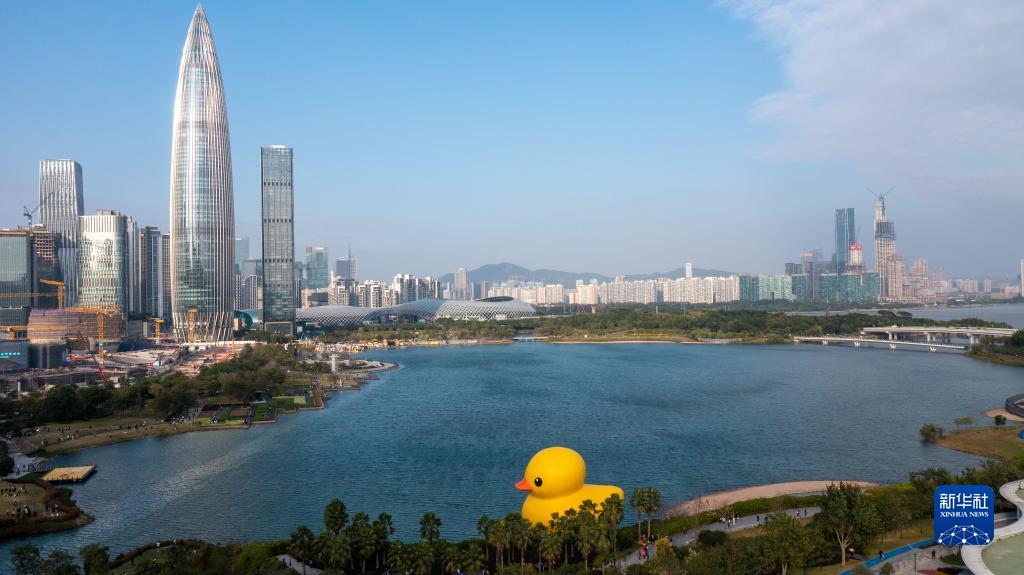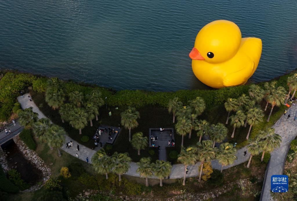 12月20日,在深圳人才公园拍摄的“大黄鸭”(无人机照片)。新华社