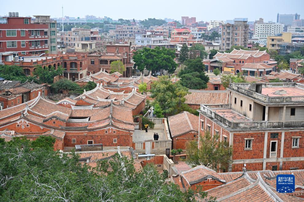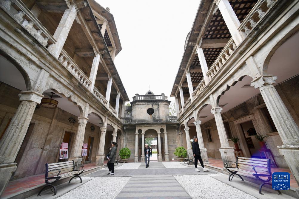 梧林村是远近闻名的华侨村,旅居海外的华侨1万余人,现存各式各样的闽南官式大厝、哥特式和罗马式洋楼、中西合璧名居、番仔楼等历史建筑132幢。走进梧林,仿佛走进一座开放式的华侨建筑博物馆,一幢幢风格各异的侨乡建筑讲述着百年侨村的辉煌荣耀,传递着一代代华侨的悠悠家国情。图为12月19日,游客在梧林村华侨历史建筑朝东楼内参观游览。朝东楼建造之时正赶上抗日战争最艰难时期,心系祖国的侨厝主人当即停止建设工程,将装修款捐献给国家支援抗战,于是便留下这样一座带有“瑕疵”的建筑,被村民亲切地称为“最美烂尾楼”。新华社