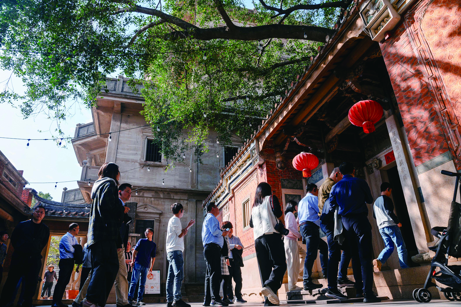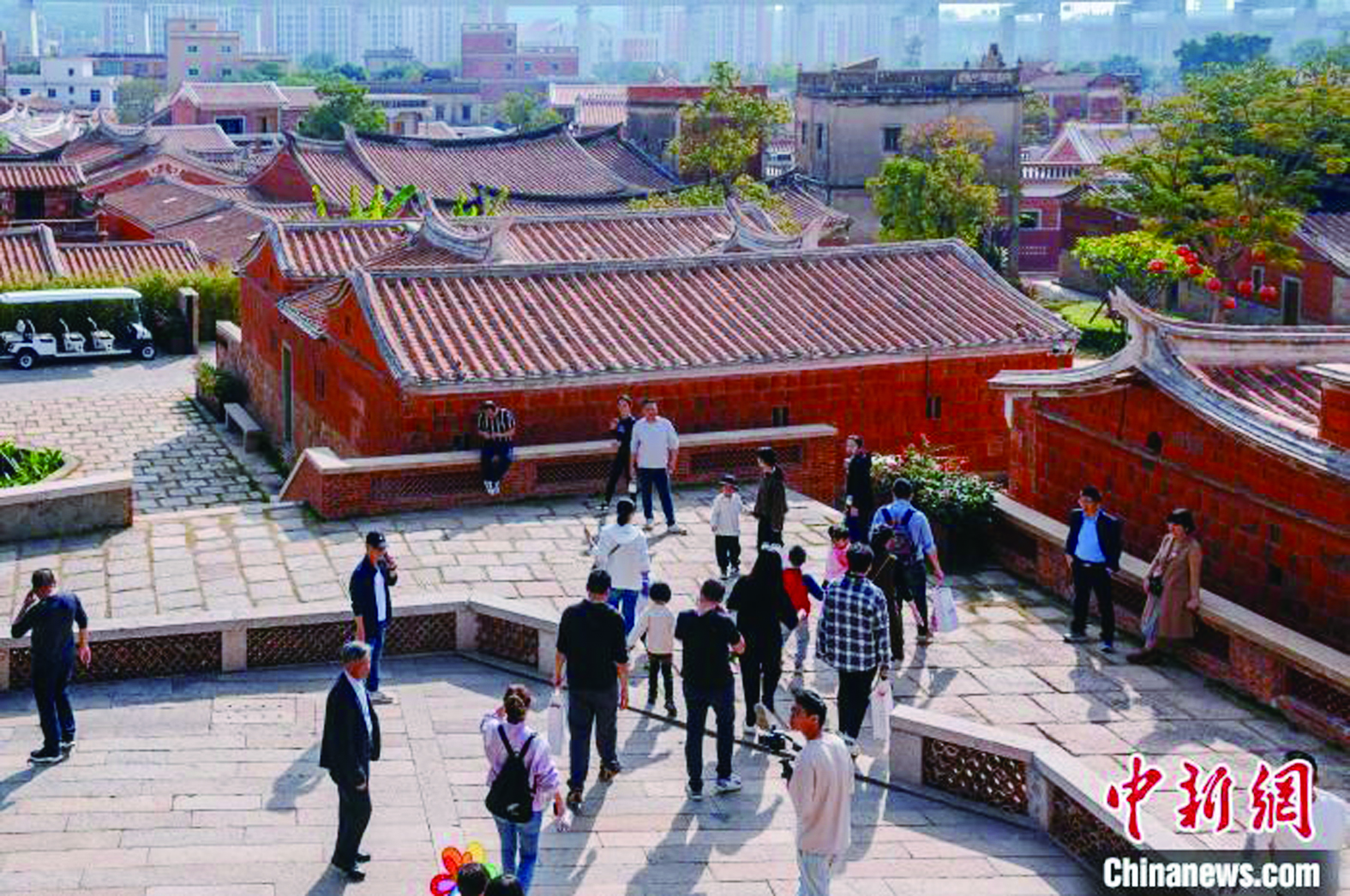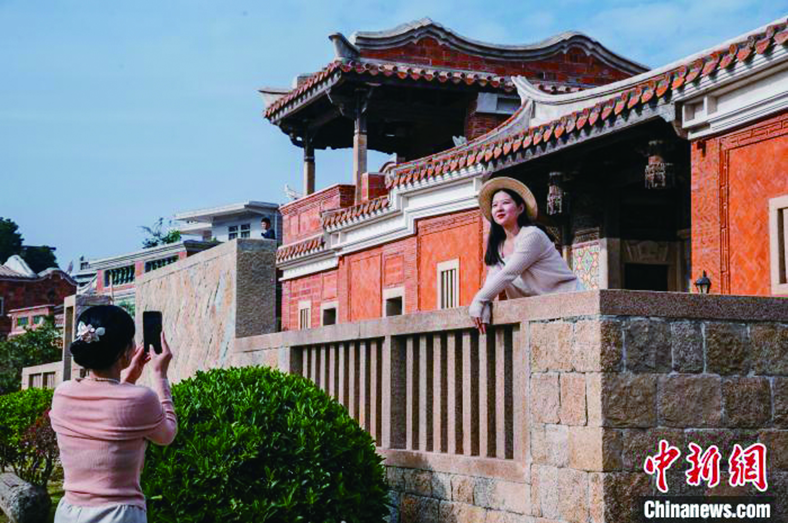 12月19日,游客在梧林村华侨历史建筑五层厝前游览拍照。中新网