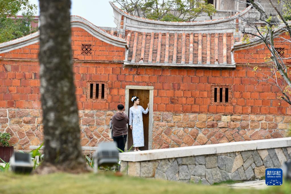 12月19日,游客在梧林村一处闽南传统民居旁拍照。新华社