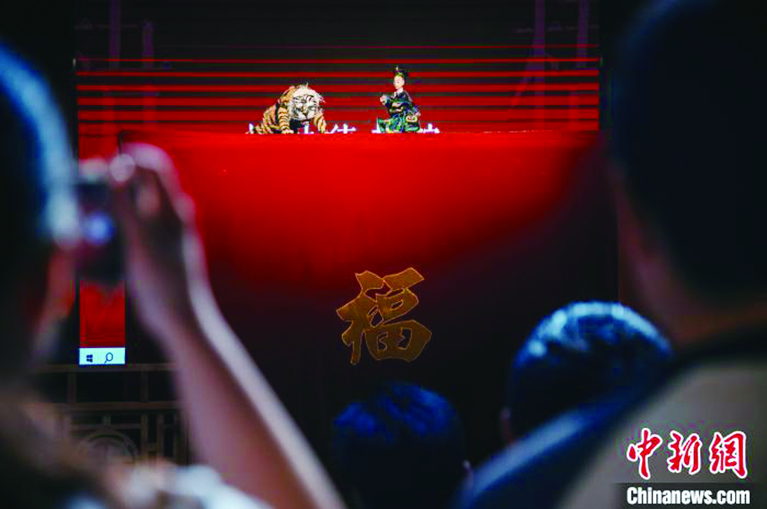 12月10日,游客在梧林村观看掌中木偶戏。中新网