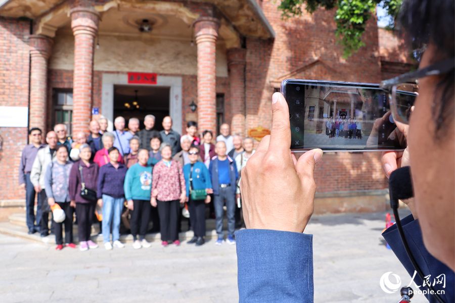 12月10日,在梧林传统村落,参观游客合影留念。人民网
