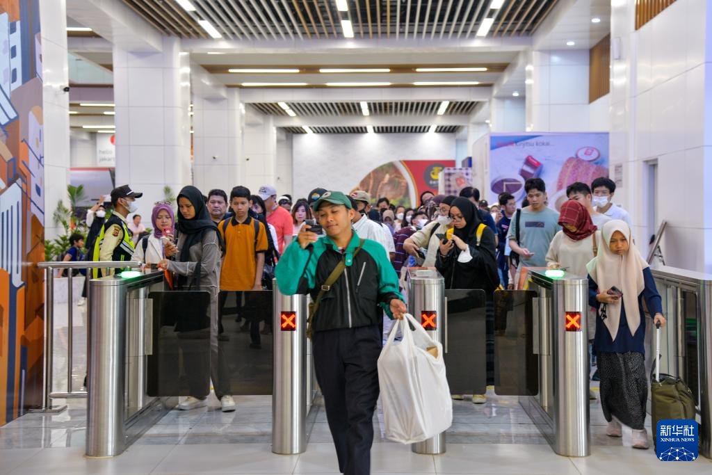 据中国铁路国际有限公司消息,截至12月24日,中国印尼共建“一带一路”合作旗舰项目——雅万高铁累计发送旅客突破100万人次。据悉,雅万高铁于10月17日正式开通运营,平均上座率为90%。雅万高铁不仅给当地民众出行带来便利,改善了当地的交通状况,同时也带动了高铁沿线经济发展。图为12月25日,乘客在印度尼西亚雅加达哈利姆站候车大厅刷票进站。新华社