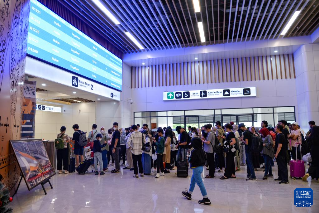 雅万高铁开通运营以来,客流保持高位增长态势,为沿线民众提供了安全便捷、温馨舒适的出行体验。图为12月25日,乘客在印度尼西亚雅加达哈利姆站候车大厅排队等候。新华社