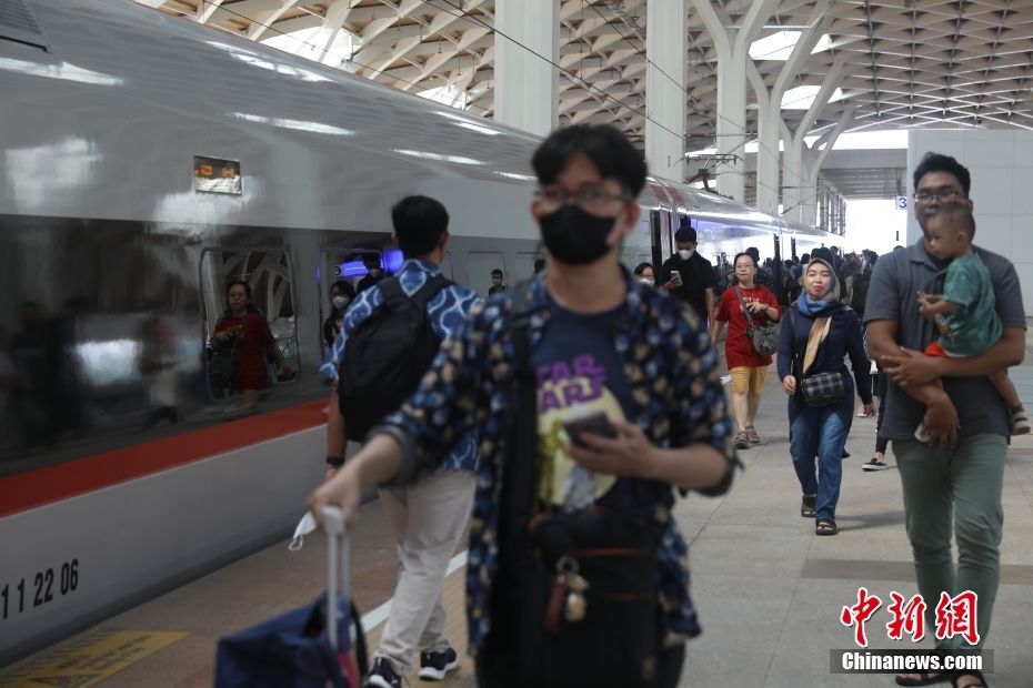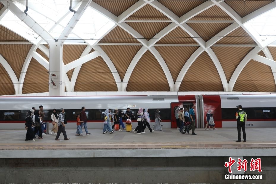 12月25日,在雅万高铁哈利姆车站,月台上的乘客准备乘车。中新网