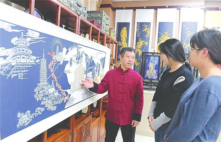 阜城县剪纸艺人刘建国历时42天创作完成了剪纸作品《京杭流韵图》,再现京杭大运河繁荣景象。《衡水日报》