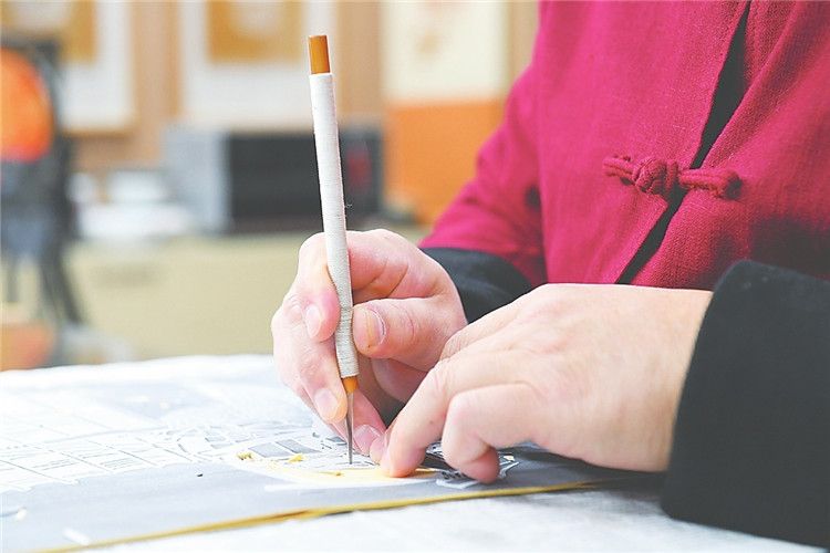 12月28日,河北省衡水市阜城县,剪纸艺人刘建国制作剪纸作品。中新网