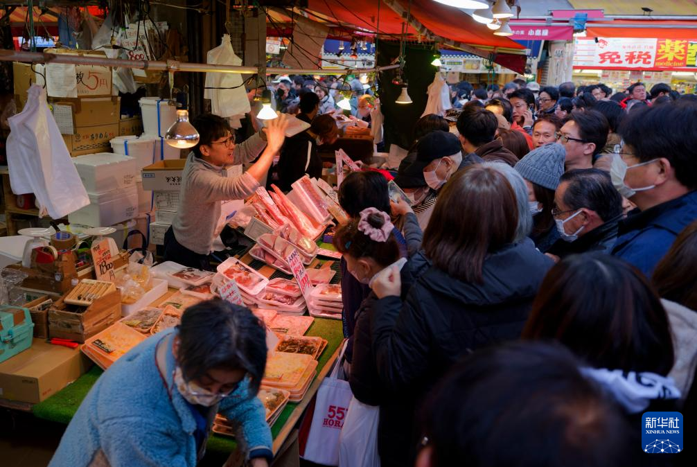 2023年12月30日,人们在日本东京阿美横町商店街购买海产品。新华社