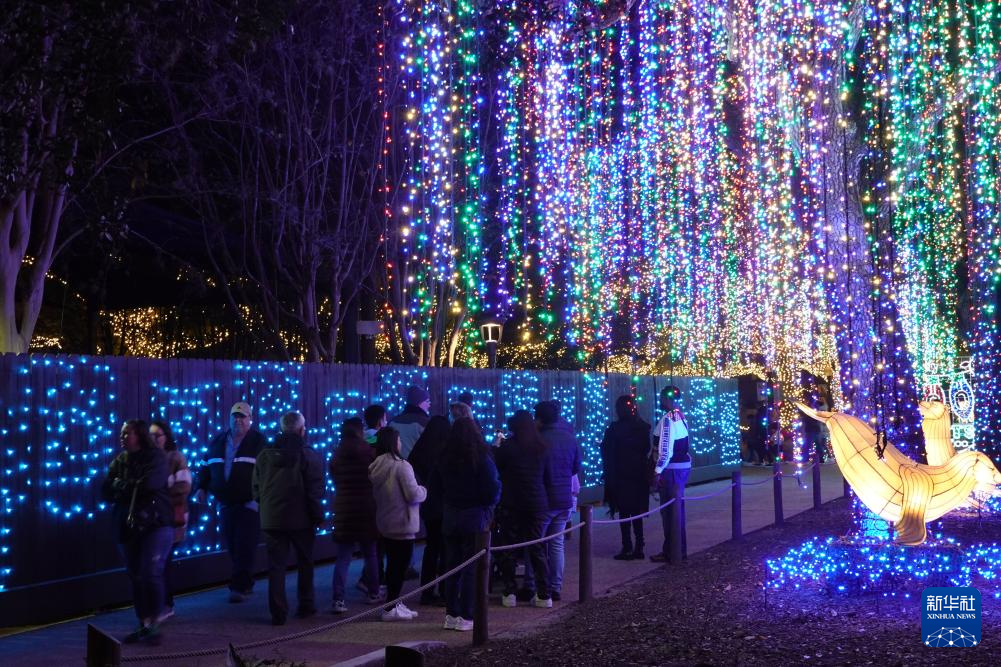 2023年12月30日,游客在美国休斯敦动物园观赏灯饰。新华社