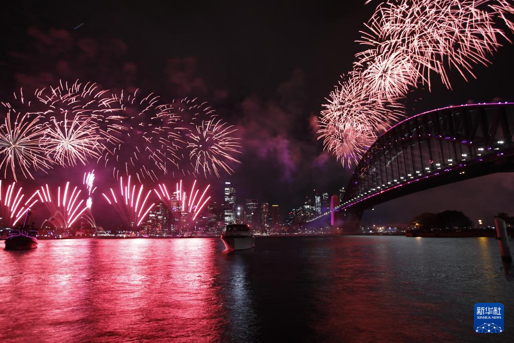 2024年1月1日,澳大利亚悉尼燃放烟花迎接新年。新华社