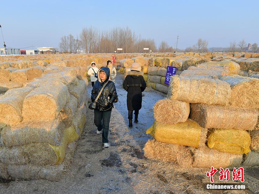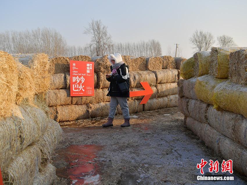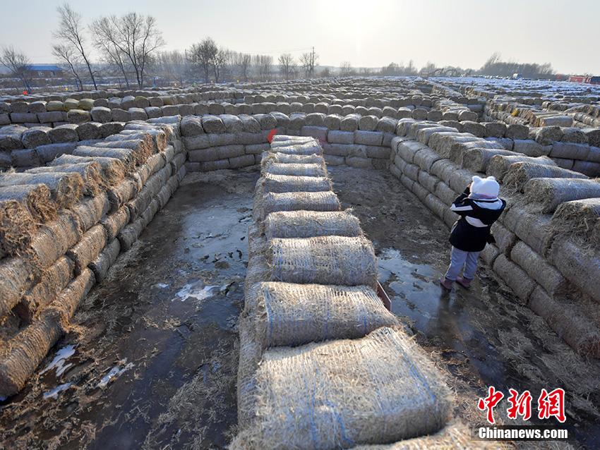 游客在由秸秆搭建的迷宫内探索。