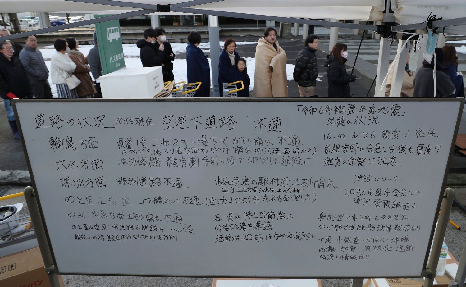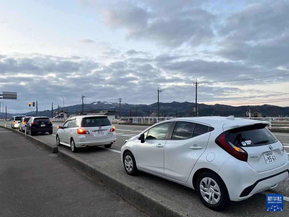 1月1日,汽车停在日本富山县小矢部市的高速出口处,等待新的消息。新华社