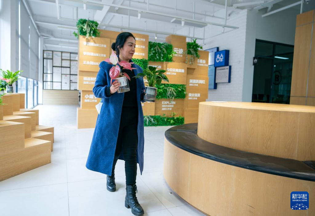 冬日里的斗南花卉市场,各种鲜花色彩斑斓,鲜花拍卖、零售等有序进行,前来采购的游客和花商络绎不绝。 近年来,加大花卉品牌建设力度,做好花卉与各产业融合发展,提升花卉附加值成为产业发展共识。作为一名花卉产业从业者,杨巧艳表示将通过自己的努力将花艺作品带给更多的人,秀出鲜花“新花样”,让大家更加了解这个行业,做好花卉文化和艺术的普及。图为杨巧艳在斗南花卉市场的工作室内制作花艺作品(12月26日摄)。新华社