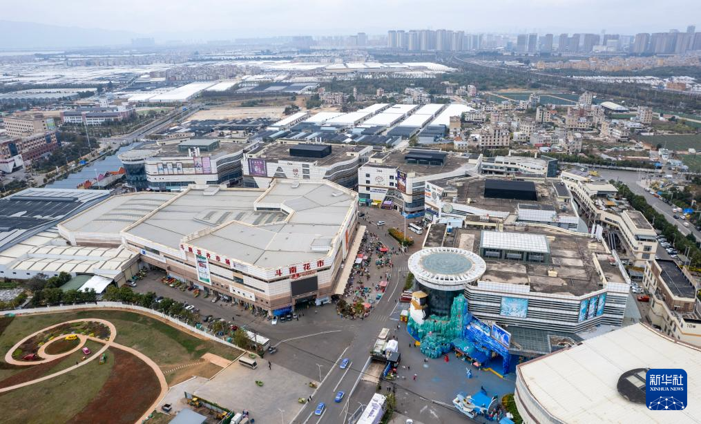 历经40年的积淀和发展,昆明斗南的一枝枝鲜花成就了“亚洲花都”的美誉。图为昆明市斗南花卉市场一景(12月26日摄,无人机照片)。新华社