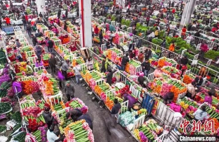 位于云南昆明的斗南花卉市场。中新网
