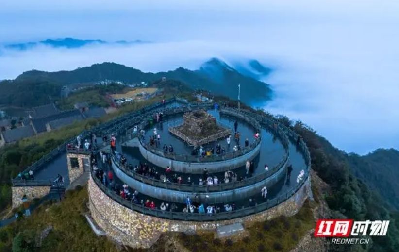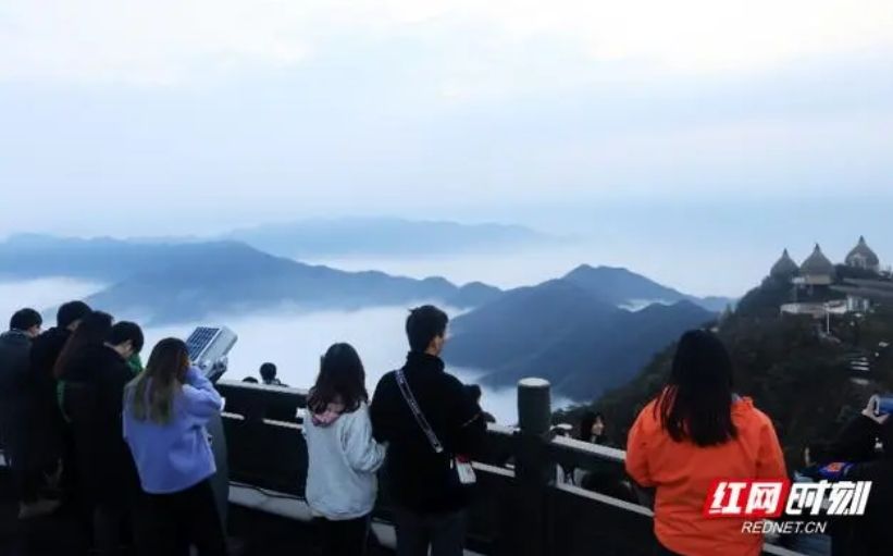 2024年的第一天,湖南省资兴市回龙山景区出现日出云海景观,景色如画,蔚为壮观,吸引众多游客登山游玩赏景。红网