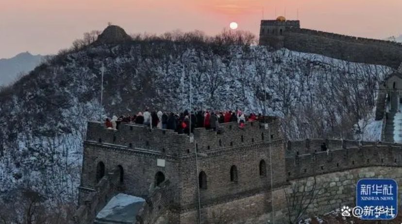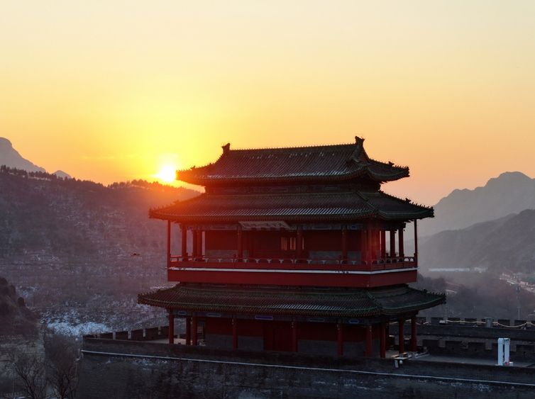1月1日,在北京市昌平区拍摄的居庸关长城日出。中国日报网