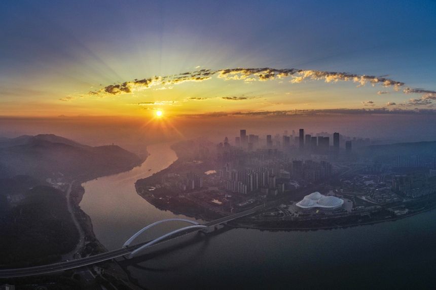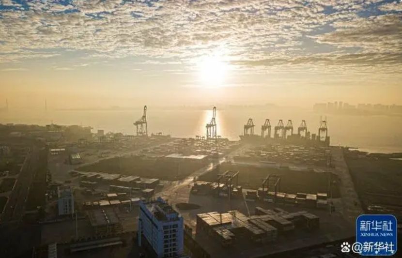 1月1日在海南自贸港重点园区——洋浦经济开发区拍摄的晨光(无人机照片)。新华社