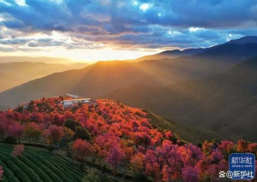 1月1日,位于云南省大理白族自治州南涧彝族自治县的无量山樱花谷迎来2024年第一缕阳光(无人机照片)。新华社