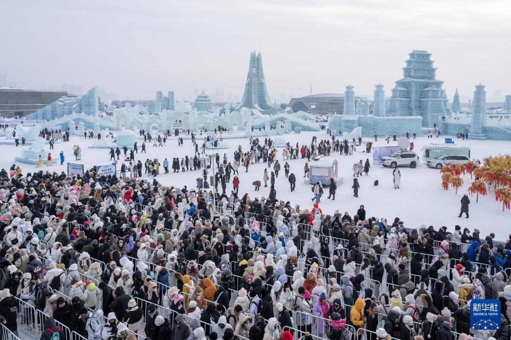 中国2024年的第一个网红城市诞生了。哈尔滨以“冰城”为美誉,是中国最早开发冰雪旅游的城市,每年冬季吸引中外游客纷至沓来。今年冬天,这座老牌儿冰雪旅游名城迎来“泼天”的人气。进入2023年底,从各地飞往哈尔滨赏冰乐雪的游客就开始多起来。截至2023年12月20日,哈尔滨机场2023年旅客吞吐量突破2000万人次,成为2023年东北地区首家客流突破2000万的机场。随着元旦假期的到来,哈尔滨的热度更是被顶到了一个新高度。据悉,假期3天,哈尔滨市累计接待游客304.79万人次,实现旅游总收入59.14亿元人民币。游客接待量与旅游总收入达到历史峰值。图为游客在哈尔滨冰雪大世界园区排队,等待体验超级冰滑梯(1月1日摄)。新华社