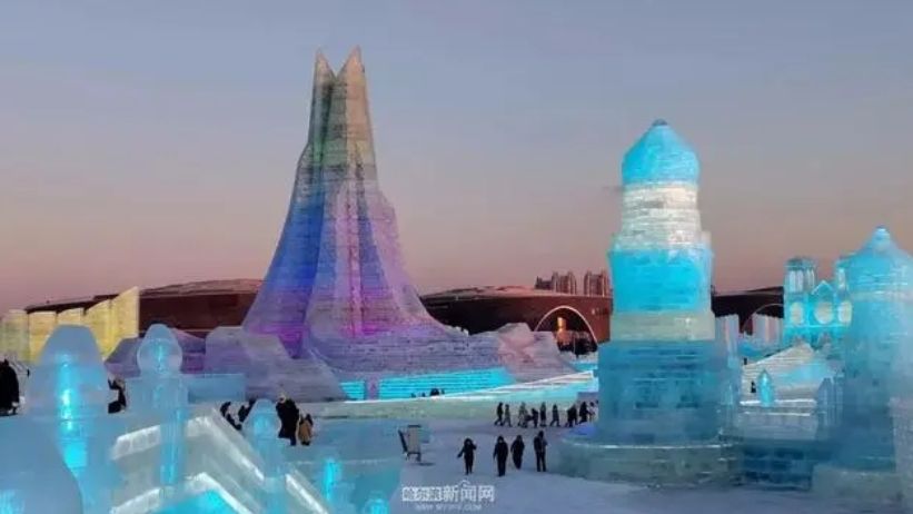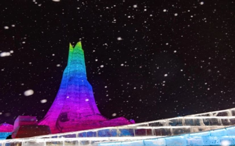 第二十五届哈尔滨冰雪大世界主塔。哈尔滨新闻网