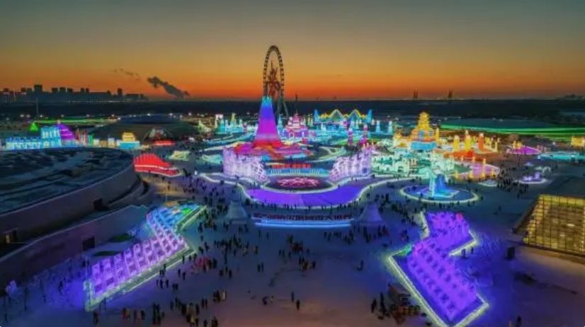 第二十五届哈尔滨冰雪大世界航拍照片。哈尔滨新闻网