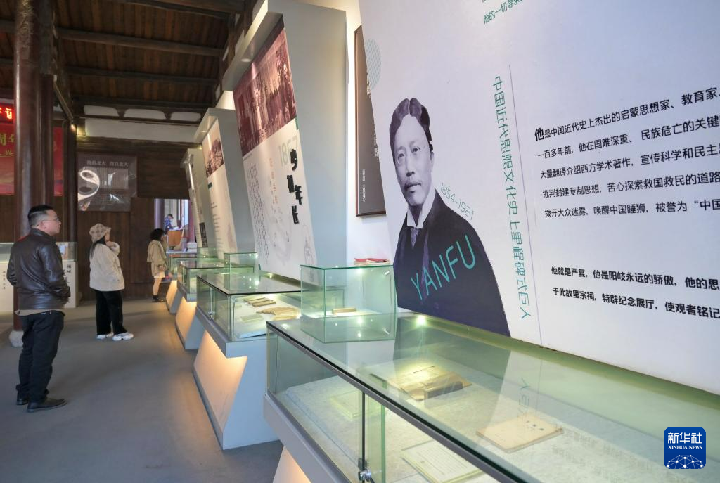 严复1854年出生于福建侯官(福州),是中国近代启蒙思想家、翻译家、社会改革家和教育家。今年是严复诞辰170周年。近日,纪念严复诞辰170周年系列活动在福州举办,让人们深入了解严复文化、感受严复精神。图为1月6日,游人在位于阳岐村的严复纪念馆参观。位于福州市仓山区的阳岐村是福建省历史文化名村,是目前中国保存与严复相关的文物古迹较多、种类较丰富的历史文化集中区,拥有严氏宗祠、严复故居、严复纪念馆等。新华社